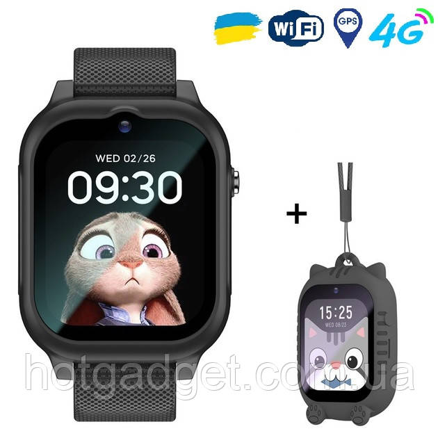 Дитячий розумний смарт годинник Lemfo K26 з GPS/WIFI/4G відеодзвінок, прослуховування, батьківський контроль black